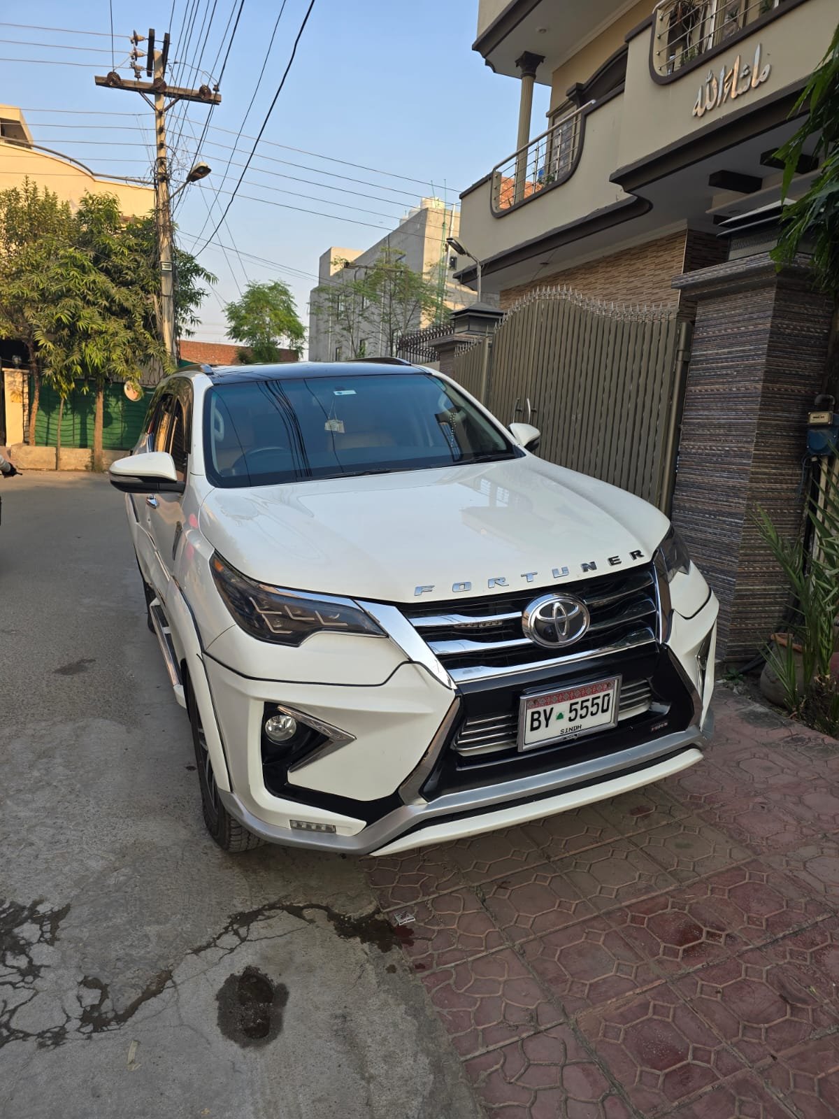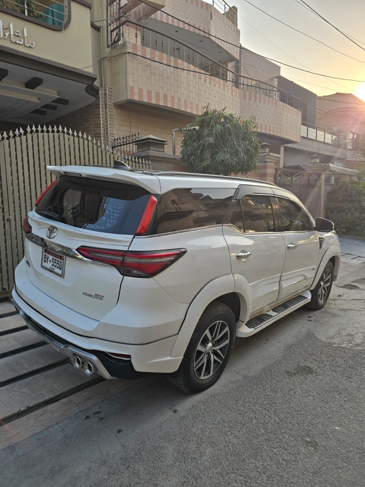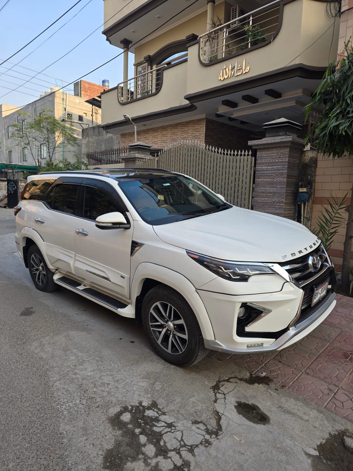 Book a luxury Toyota Fortuner 2019 (White) for weddings, events, and routine day rent a car services in Lahore, especially Johar Town. Perfect for premium travel.